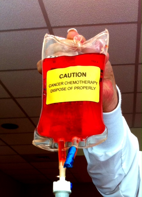 I had to chuckle when I started researching these drugs i’m being injected with. This one bag they hung on the IV pole caught my eye with it’s beautiful ruby red color. Wikipedia to the rescue. The drug is Doxorubicin, AKA, Adriamycin.Adriamycin – AKA, The Red Devil